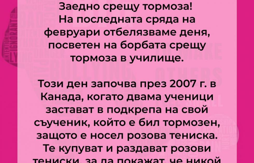 На 25 февруари учениците от Български младежки Червен кръст (БМЧК) към ТУЕС организират отбелязването на Световния ден за борба с тормоза в училище, известен като „Ден на розовата фланелка“.